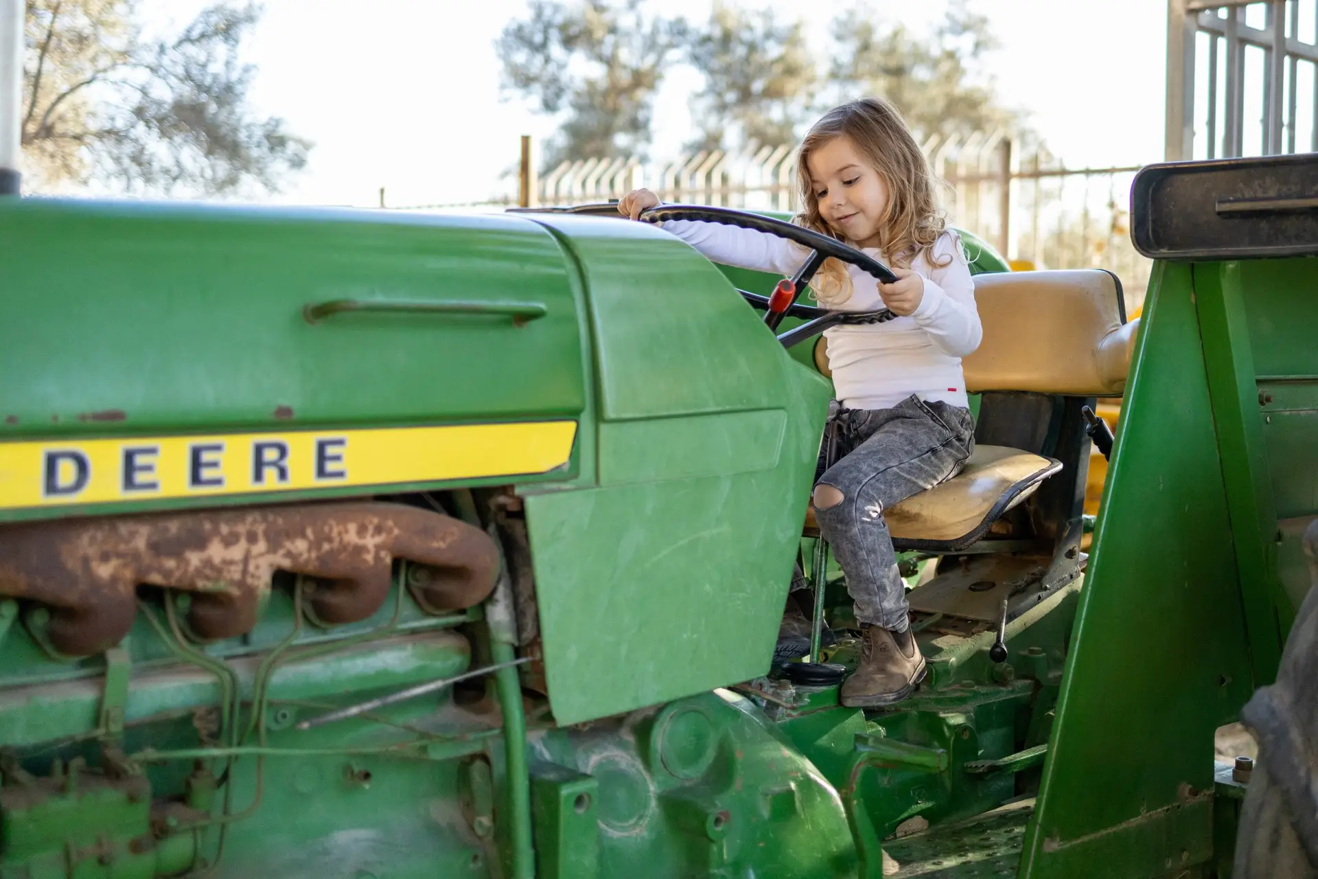 תצוגה גדולה ומרשימה של דגמי טרקטורים מדגם 'ג'ון דיר' (Jhon Deere) עליהם הילדים יכולים לטפס ולהצטלם. כמו כן, לילדים הצעירים יותר ישנם טרקטורי–צעצוע איתם אפשר לנסוע.